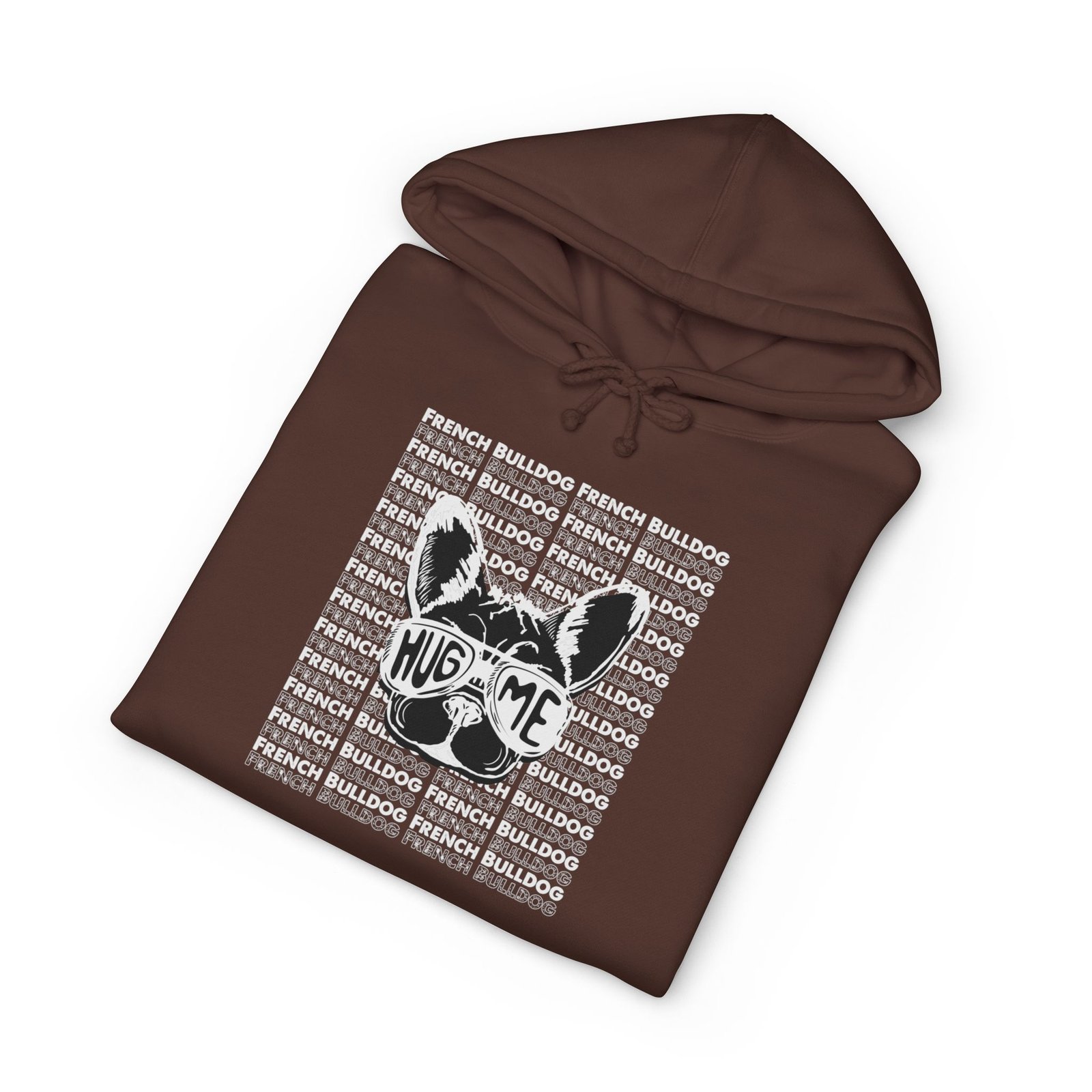 Light, quiet humor meets cozy warmth. This heavyweight hooded sweatshirt features a small, hand-drawn French bulldog face across the chest wearing sunglasses that read “Hug Me.” The design sits low-key and slightly cheeky — the kind of graphic that starts conversations without shouting. Built with a dense 10 oz fabric and a fleece-lined hood, it feels substantial and comforting on cool mornings and late-night walks. The relaxed cut lets you layer a flannel or tee underneath and move with ease. Wear it while running errands, curled up with a book, or out walking your dog; it adds an unforced, friendly touch to everyday routines and low-key gatherings.